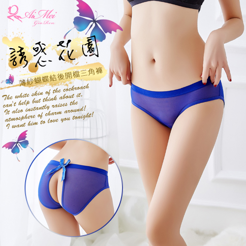 誘惑花園!薄紗蝴蝶結後開檔三角褲﹝寶藍﹞