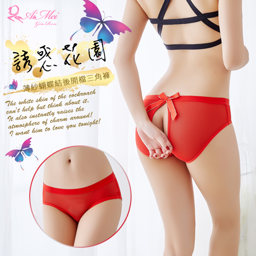 誘惑花園!薄紗蝴蝶結後開檔三角褲﹝紅﹞