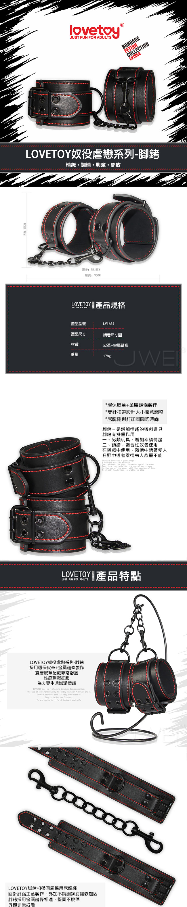 Lovetoy.BONDAGE FETISH奴役虐戀系列-SM皮革腳銬