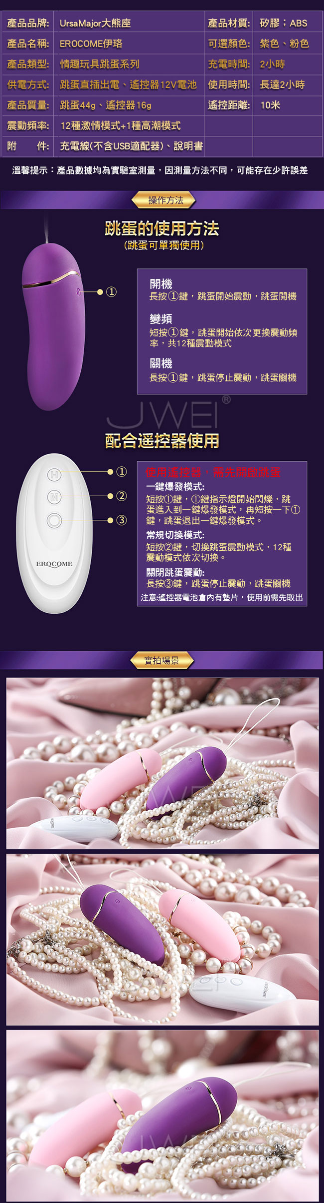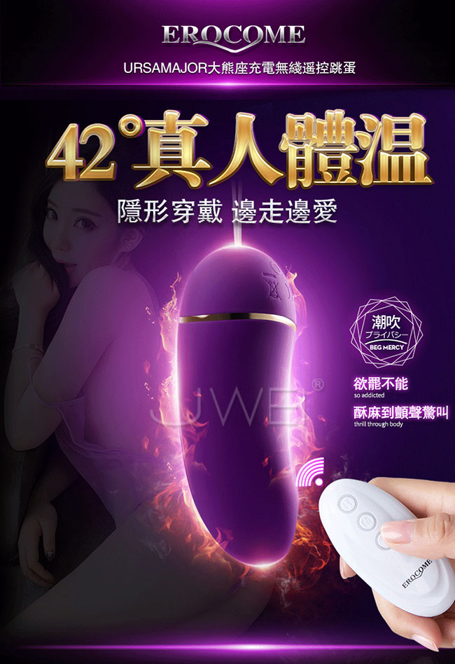 ►您現在的位置:首頁>EROCOME伊珞.大熊座UrsaMajor 12段變頻智能加溫一鍵爆發無線遙控跳蛋-粉色/紫色