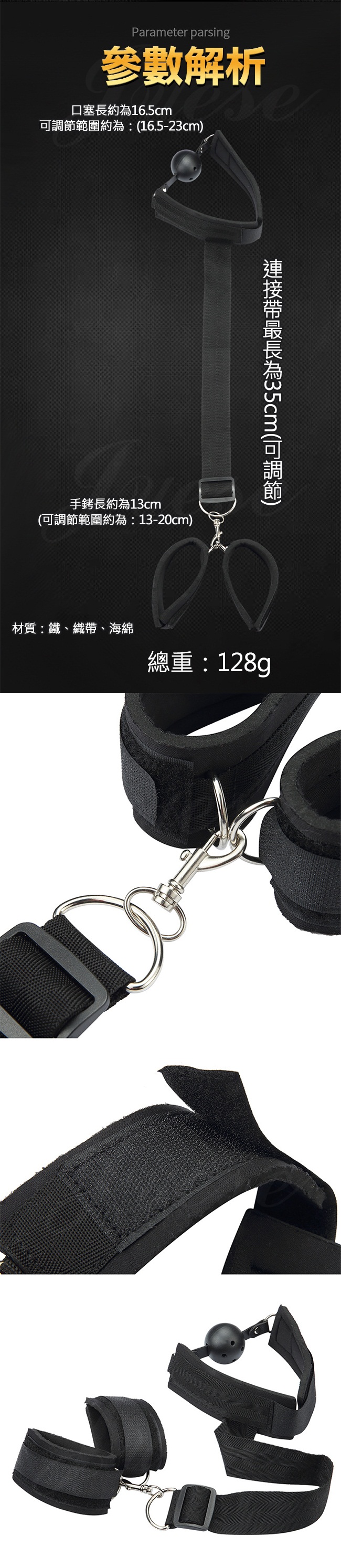 SM性虐反背口塞手銬束缚帶(黑色)
