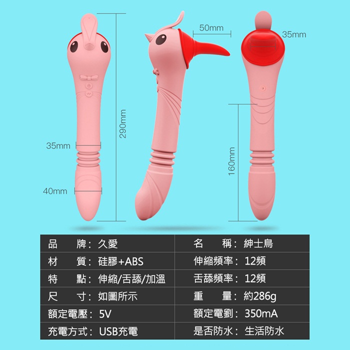 | 紳士鳥伸縮舌舔電動按摩棒(加溫款)