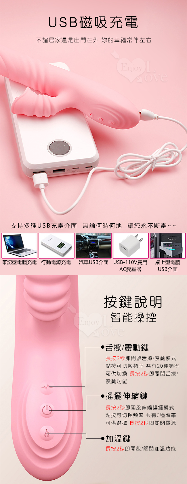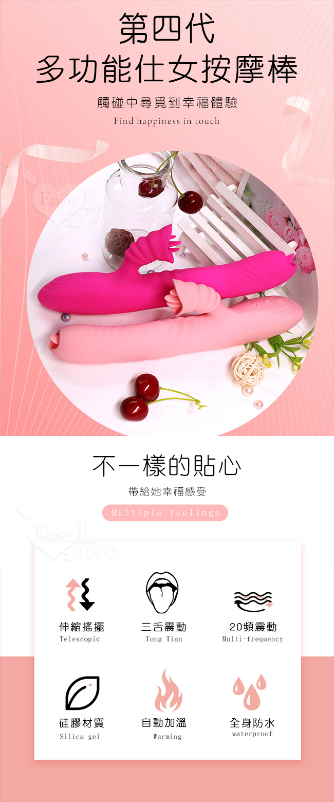 滿2000元贈品 悅潮 ‧ 四代多功能仕女按摩棒﹝3頻伸縮搖擺+20頻雙震撩動+智能加溫+USB便捷充電﹞