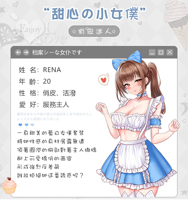 | 女僕角色扮演服!清新藍白荷葉花邊開衩裙襬蝴蝶結點綴七件式套裝