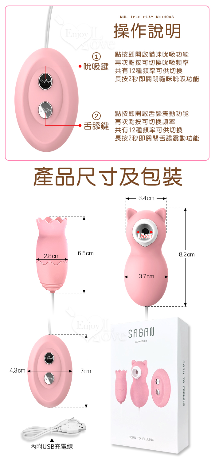 SAGAN 尚感 ‧ SUCK CAT 吮潮貓 12X12舌舔撩撥+吸吮刺激 遊走陰乳按摩器﹝USB充電款﹞