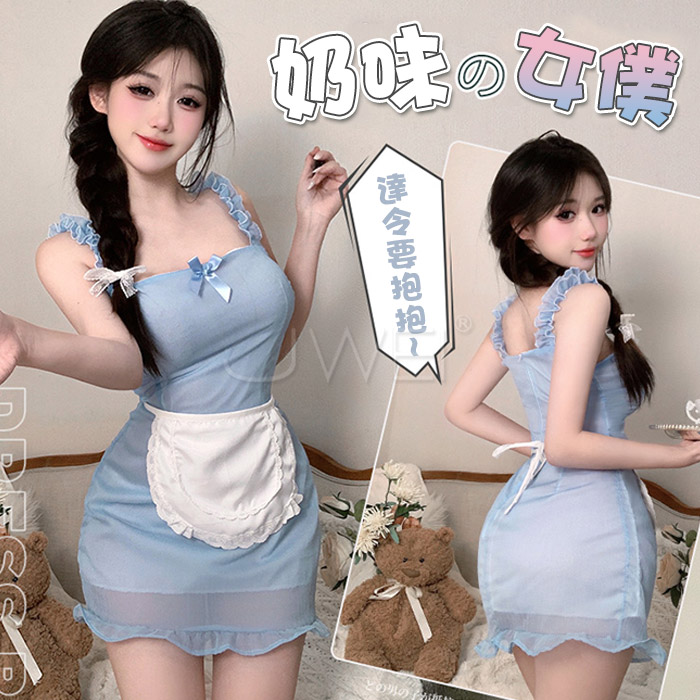※ 商品內容:髮箍+頸環+短上衣+手環*2+圍裙+丁字褲+絲襪。(不含手持道具)