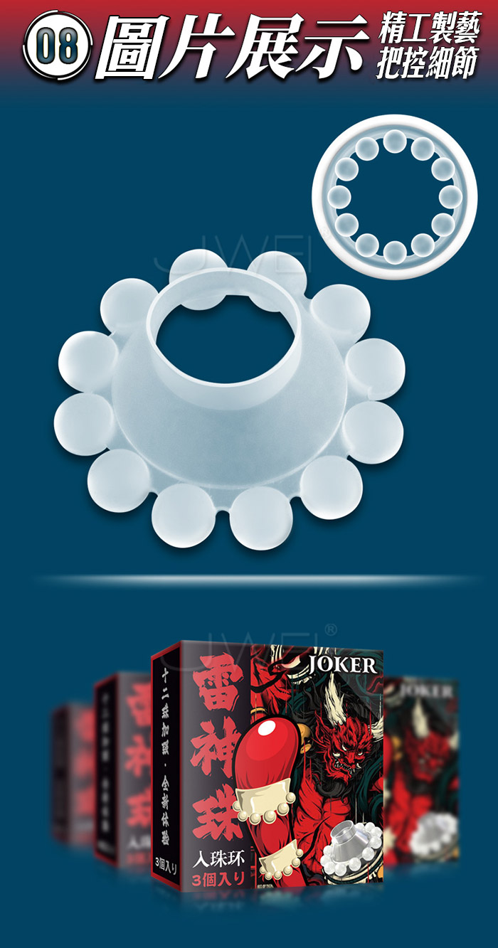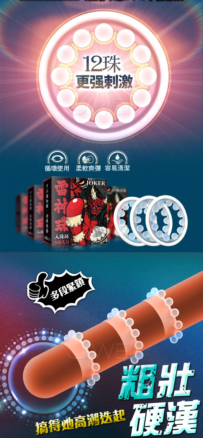 ►您現在的位置:首頁>JOKER 單層12珠.雷神珠入珠高潮環