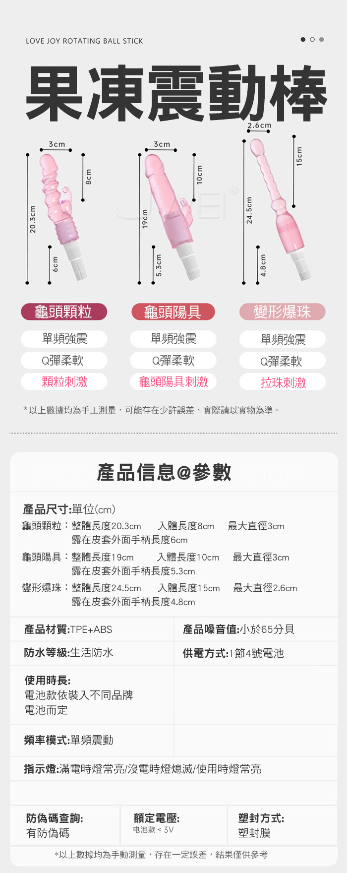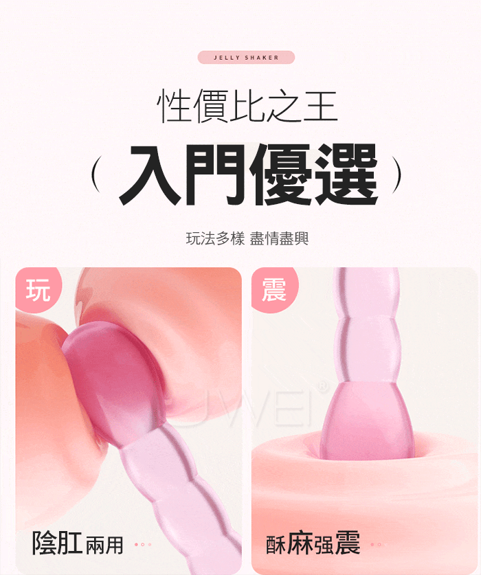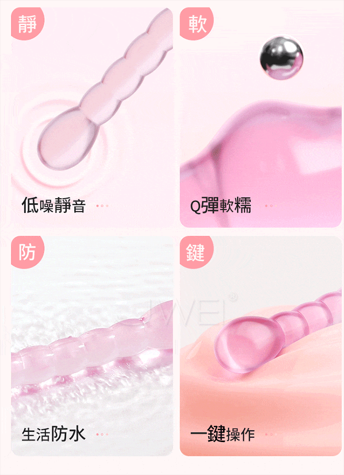 變形爆珠棒,適合情趣大師玩家,連環拉珠慢慢深入開發後庭,圓潤頭部,連環拉珠刺激,凹凸強震後庭;高頻強震,酥麻快感一鍵操作,簡單易懂;果凍般柔潤,Q彈軟糯,絲 滑剔透,親膚舒適,更易入體不傷私處!