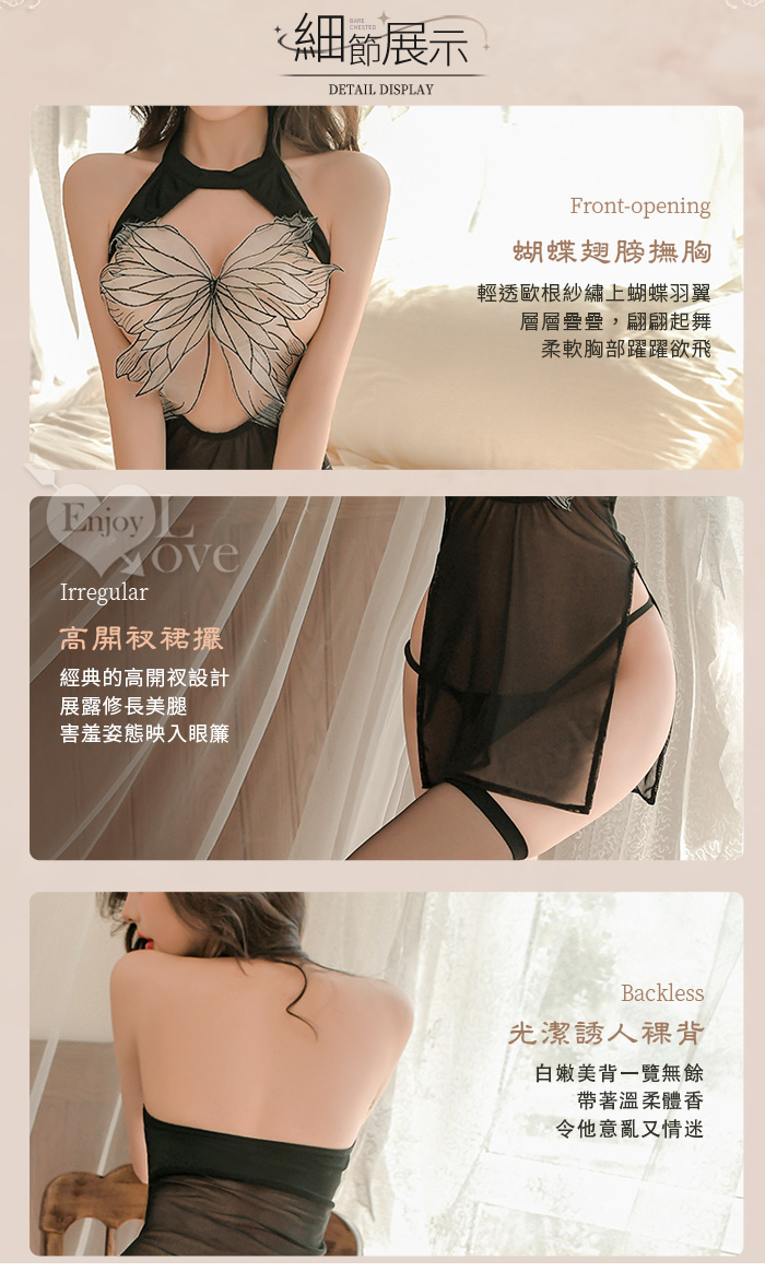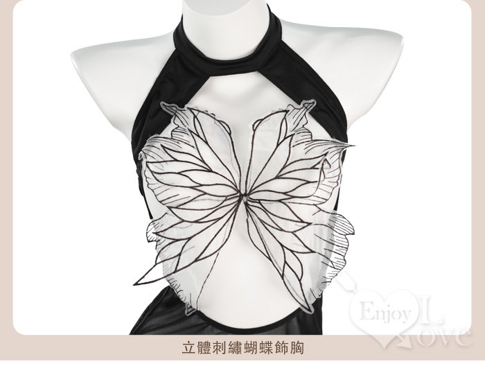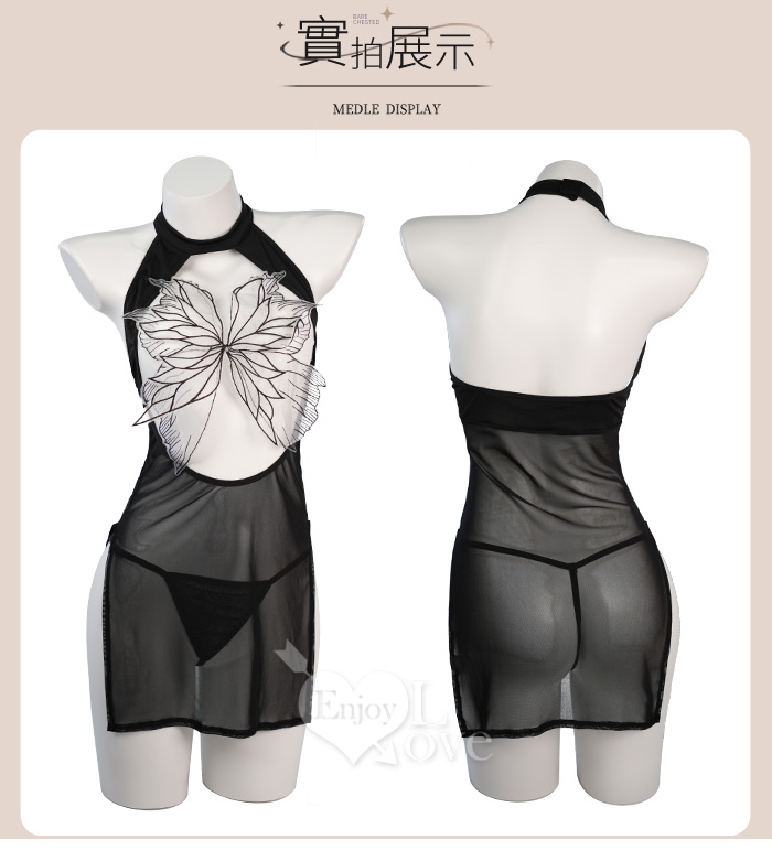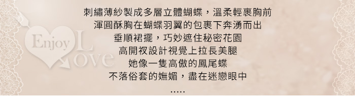 ►您現在的位置:首頁>情趣睡衣!刺繡薄紗燕尾蝶美胸高衩連身裙含襪三件組