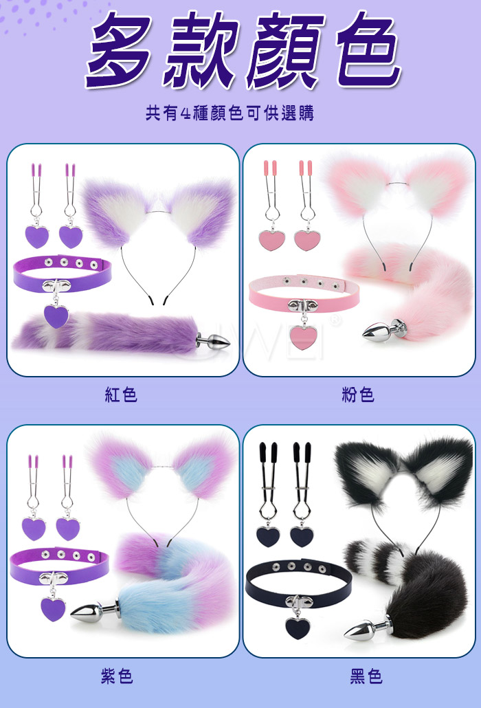 ►您現在的位置:首頁>萌娘狐姬.裝扮遊戲4件套組﹝狐狸尾巴+毛絨髮箍+愛心頸圈+愛心乳夾﹞藍紫