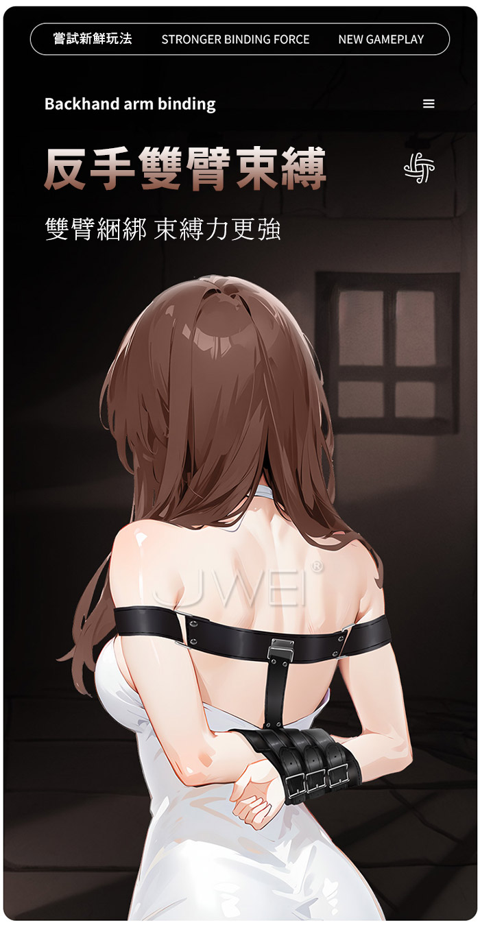 反手雙臂束縛 雙臂綑綁 束縛力更強! 補助調教利器,享受被包裹、被束縛、緊縛雙臂的樂趣.... 細節彰顯品質,柔軟皮革不傷皮膚,優選五金材質,久玩不易壞。 產品規格 ■尺寸:大小詳如圖片標示 ■材質:人造皮革 ■特色:情趣調情 ■注意事項:SM道具請以安全、清醒、非強迫為使用原則, 使用前請先徵得對方 的同意;使用時如有任何不適,請立即停止使用。