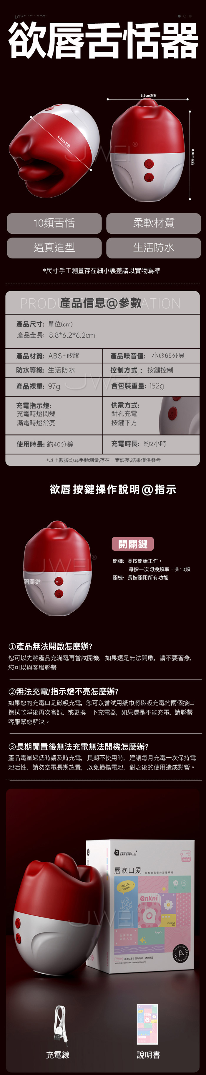 ■特色: 10頻舌恬、柔軟材質、生活防水