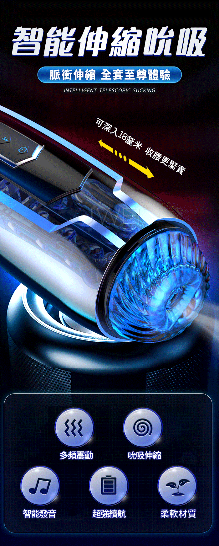 可深入18釐米,收腰更緊實,仿真5D立體通道,互動刺激更真實