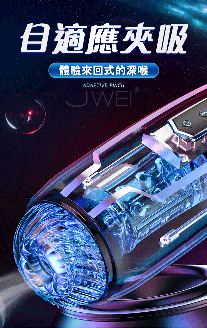 | 黑銀星空.7X7自動伸縮夾吸震動加溫發音飛機杯-含住不放能吸能震