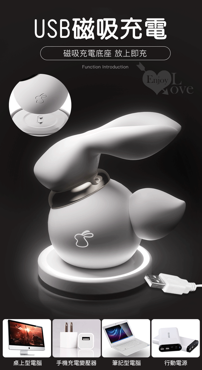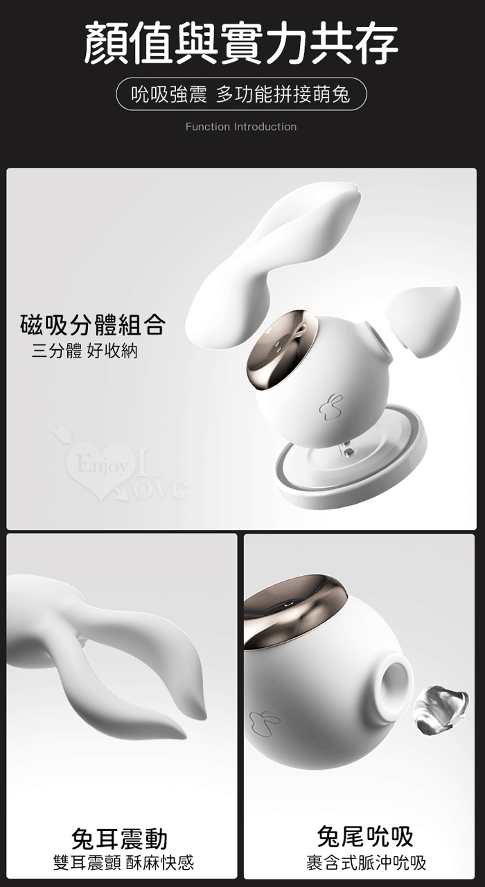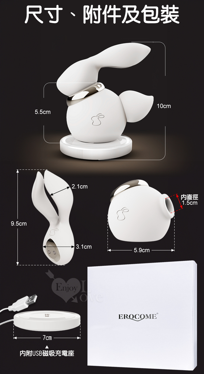| EROCOME伊珞. WHITE RABBIT 小白兔 10X10兔耳撩震+兔尾吸吮 分體式刺激按摩器﹝可愛造型+親膚滑順+磁吸充電底座﹞