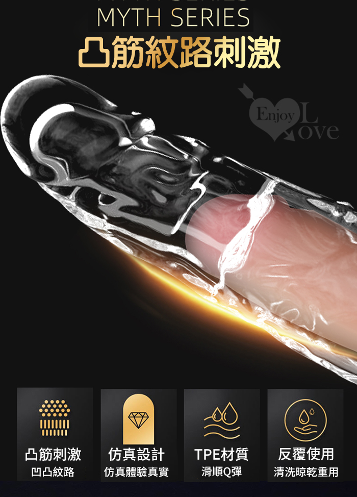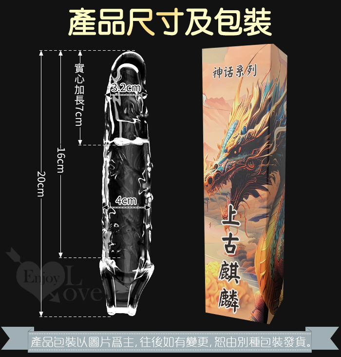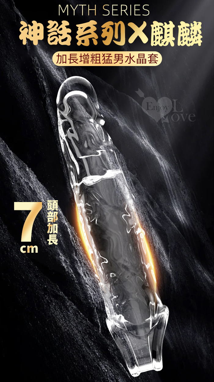 神話系列 麒麟 ‧ 凸筋紋路刺激 加長增粗猛男水晶套﹝前端實心加長7cm﹞