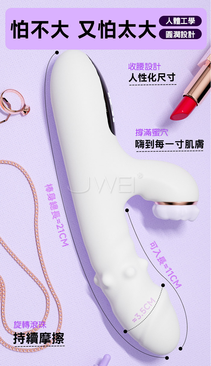 擼珠蜜動,為實現女性歡愉為主,多重體驗 永保新鮮激情 變頻直擊G點 摳動體驗,擁有快速加溫體驗,讓你無須再等 告別傳統按鍵,開啟AI觸控時代! 產品規格 ■尺寸:大小詳如圖片標示 ■材質:TPE+ABS ■充電方式: USB充電 ■特色:9頻擼動、靜謐低音、柔軟親膚、智能加溫