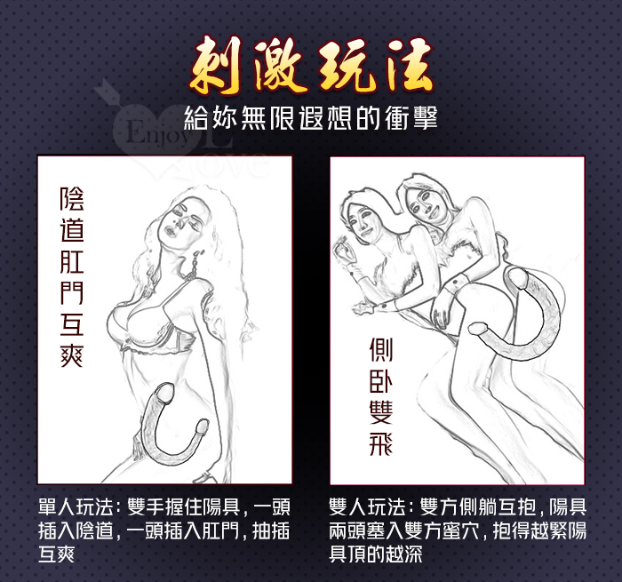 Enjoy Love ‧ 雙龍-XXL 任彎雙頭龍仿真老二筋絡水晶按摩棒﹝全長43公分﹞
