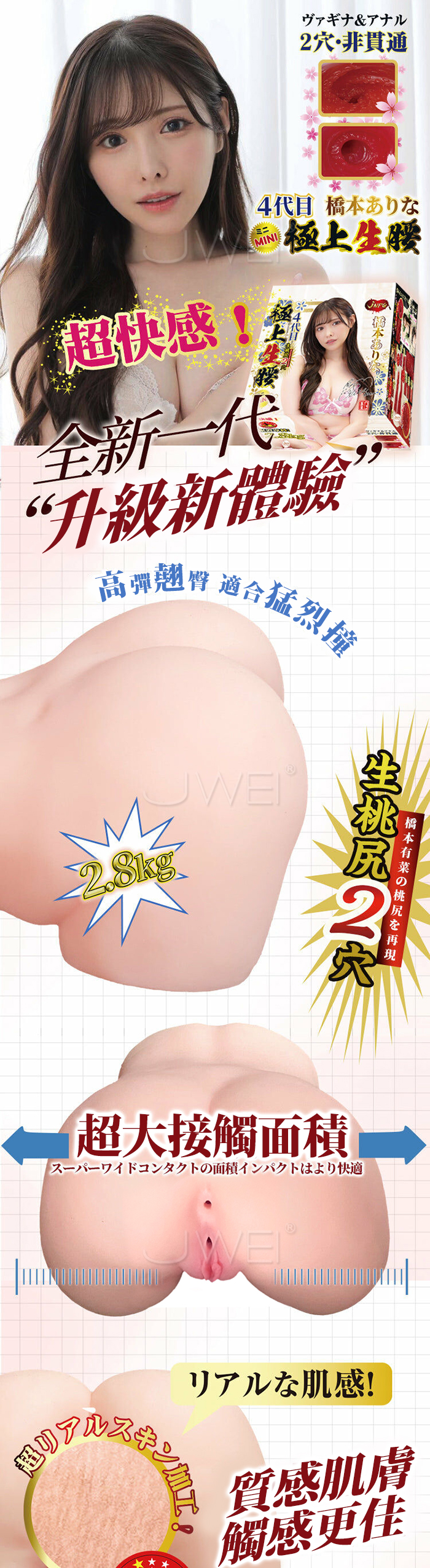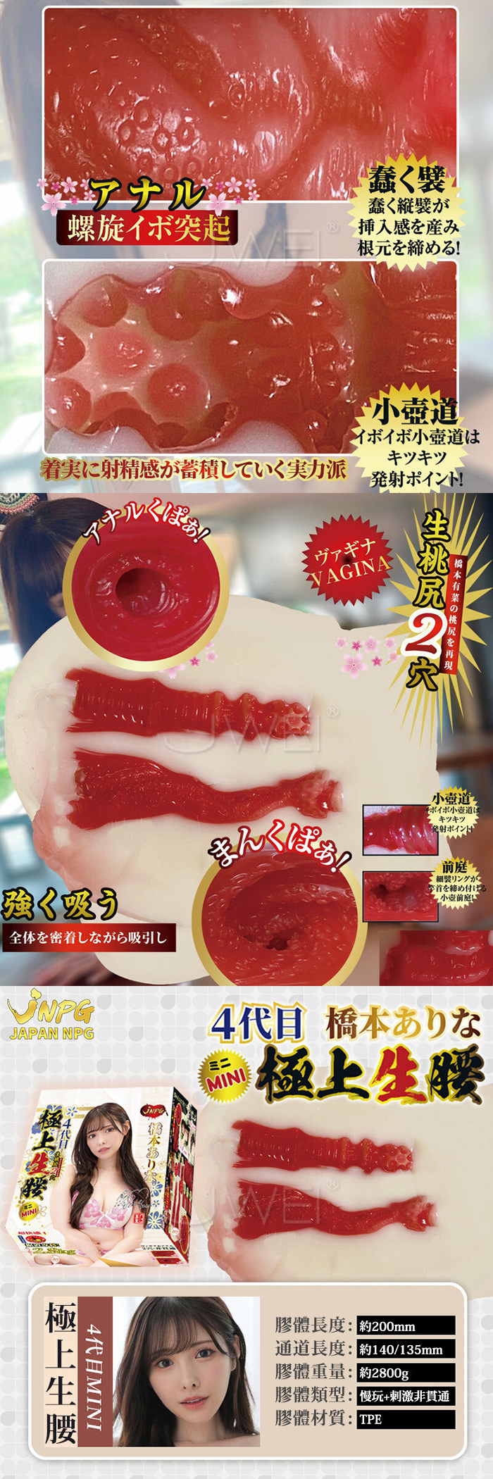 | 日本原裝進口NPG.4代目ミニ極上生腰 四代雙穴蜜桃尻自慰名器【 橋本ありな-2.8kg】