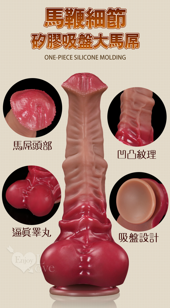 Horse 馬鞭 ‧ 另類獸根!Q彈矽膠吸盤膚質大馬屌﹝任揉任彎永不變形﹞
