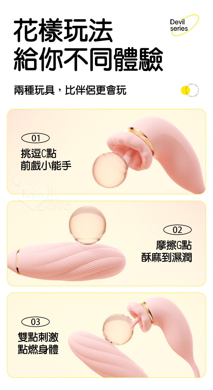 ►您現在的位置:首頁>ROSELEX 俏兒 ‧ 魔舌蜜嘴狂撩+長跳蛋 舔震聯手雙組合按摩器﹝花樣玩法/10頻強震/內外同享潮吹/親膚矽膠﹞黄