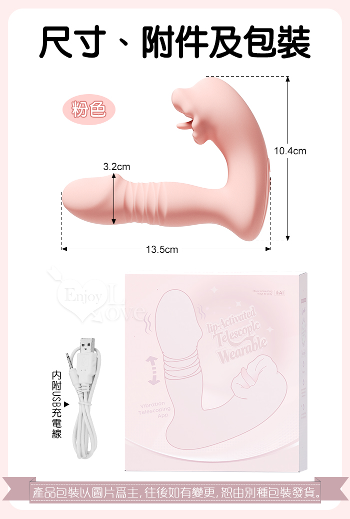 ROSELEX 上舔下頂 入體伸縮舔震三合一 10頻雙馬達貼合穿戴按摩器 - 可手機APP遙控﹝具兩種操控模式﹞粉